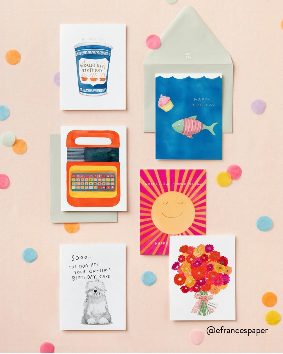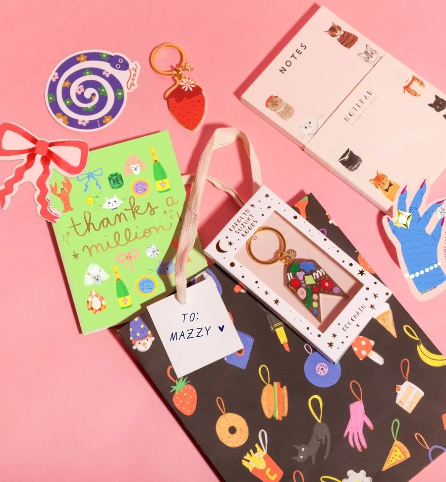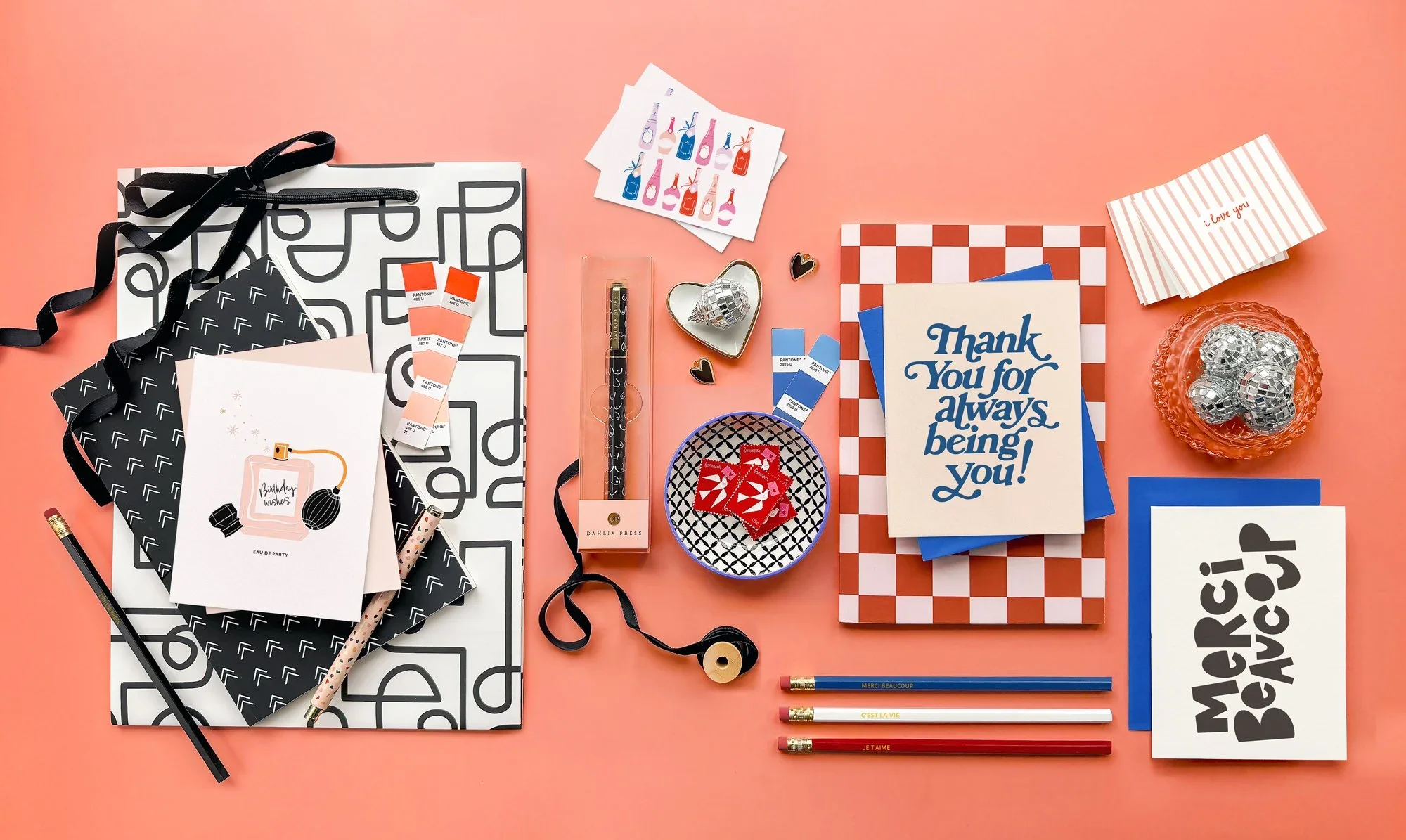 Bold and never basic, a full range of cards, bags, printed tissue paper, and more that honor the moment and can make you smile. Based in California.